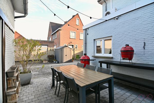 Buitenshuis is de woning voorzien van een ingesloten terras met tuinberging/werkplaats alsook een zonneterras, een grote afgesloten inrit, voorzien van carport én volledig geautomatiseerde poort over heel de breedte. (2024)