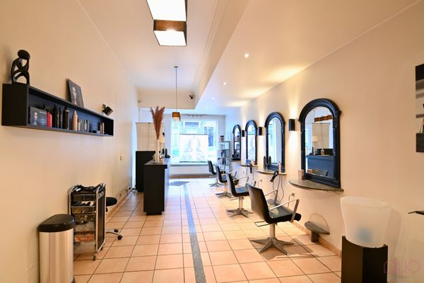 Het pand beschikt op het gelijkvloers over een grote handelsruimte van ca. 100m2, voorzien van een bijkeuken/wasplaats, alsook een apart gastentoilet en een extra buitenruimte. Momenteel is het geheel ingericht als kapsalon, voorzien van 6 kaptafels, 2 wastafels, een balie en een zit- en wachtruimte. Uiteraard kan dit handelsgedeelte ook voor andere doeleinden ingericht worden. Het pand zou eventueel als kangoeroewoning ingericht kunnen worden, mits toestemming van de gemeente.