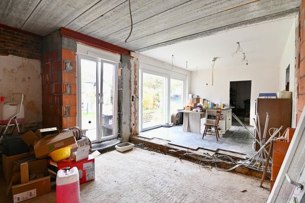 Het geheel werd reeds op ruwbouwbasis aangepast, maar moet nog grotendeels afgewerkt worden. Deze woning met aanbouw, biedt een unieke kans voor wie op zoek is naar ruimte, authenticiteit en de mogelijkheid om een eigen stempel te drukken op de afwerking. De bestaande ruwbouwstructuur, alsook het nieuwe gedeelte biedt een solide basis voor verdere inrichting. Diverse woonindelingen zijn mogelijk, naar eigen smaak, waardoor dit een unieke kans is.