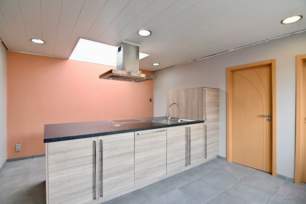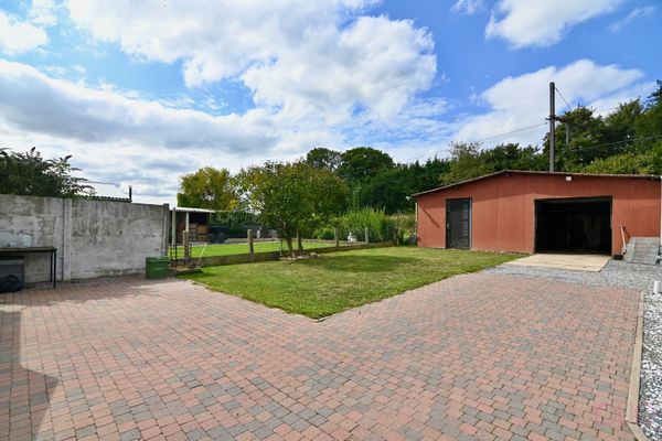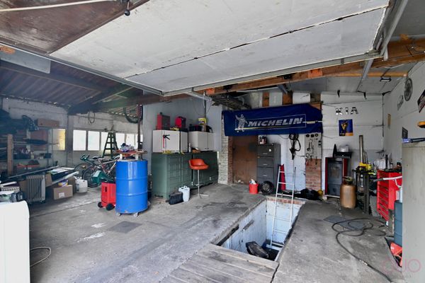 Buitenshuis beschikt de woning over een tuin met terras en een grote garage van ca. 52m2. Ideaal voor wie wilt klussen of nood heeft aan extra bergruimte.