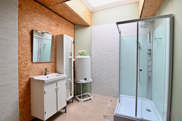 Lavabo meubel, douchecabine, toilet-aansluiting voorzien, boiler (Van marcke) 100l, centrale verwarming, dakkoepel