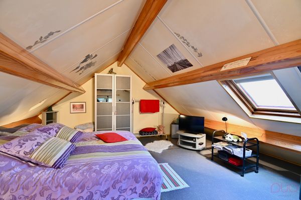 De woning beschikt over drie slaapkamers inclusief de nachthal, verspreid over de twee verdiepingen, waaronder twee ruime slaapkamers op de eerste verdieping en één op de zolderverdieping, wat tal van mogelijkheden biedt voor een gezin, bureau of hobbyruimte.