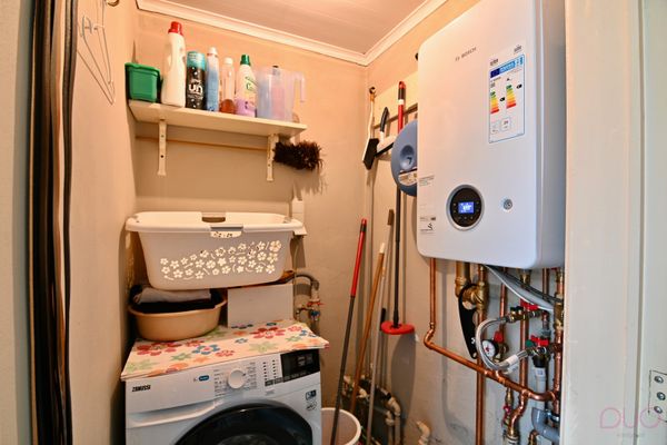 Tegelvloer, Bergruimte, CV-ketel 2019 (Bosch), aansluiting wasmachine en droogkast