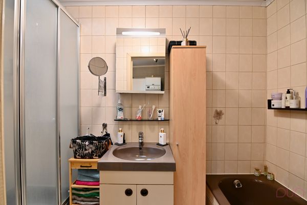 Verder beschikt de woning over een kelderberging, ideaal als extra stockageruimte. Bijkomend kan er een garage gehuurd worden vlak tegenover de woning. De woning is echter rustig gelegen in een residentiële wijk, met tal van parkeerruimte voor de deur. Allerhande voorzieningen zoals supermarkt, school, apotheker, liggen op wandelafstand.