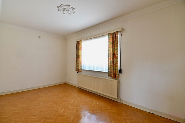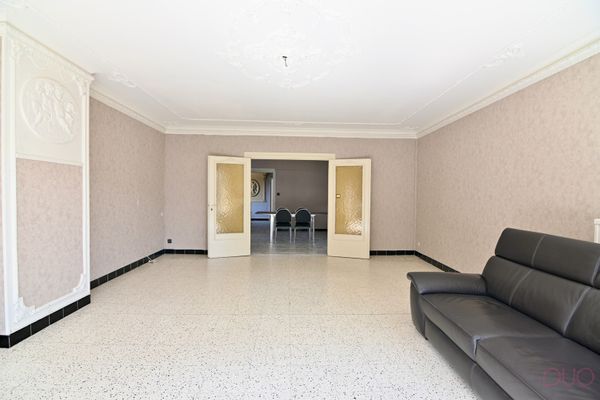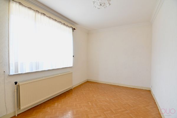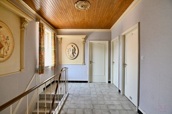 Tegelvloer, dubbele houten deur, afgewerkte sierlijsten, schouw, elektrische rolluiken