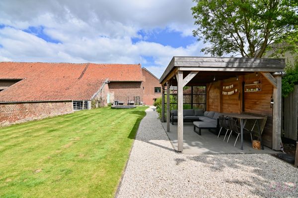SCHUREN: Deze hebben een totale oppervlakte van meer dan 370m2 en kunnen in het geheel betrokken worden om nog uit te breiden, mits het verkrijgen van de nodige vergunningen. De schuren grenzen aan de grote open tuin aan de achterzijde alsook aan de zijde van de binnenplaats. In de open tuin vinden we eveneens de PV-installatie terug.