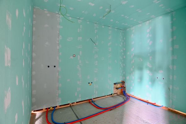 Houten vloer, aluminium ramen, internet-aansluiting, contactdozen in de vloer,