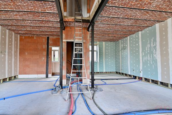 Gelijkvloers: inkomhal, toilet, leefruimte, technische berging. Eerste verdieping: vier slaapkamers, nachthal, 4 badkamers.
