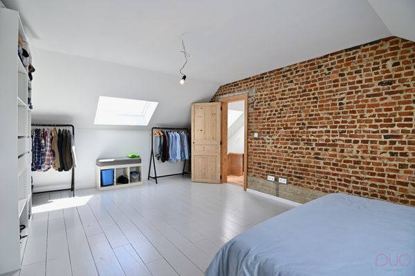 Via een vaste trap bereikt men de zolderverdieping waar we de masterbedroom vinden, voorzien van een bijhorende masterbathroom (douche, lavabomeubel en toilet) en een dressing. Deze verdieping is voorzien van een technische ruimte.