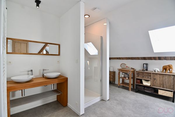 Vinylvloer, douche, dubbele lavabo, automatische ventilatie, hangtoilet, Velux-raam