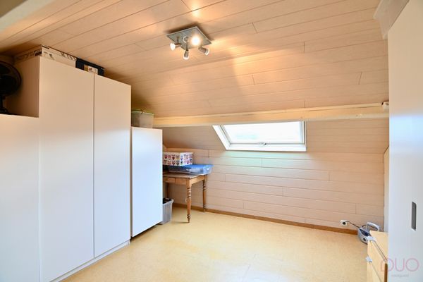 Op de verdieping bevinden zich drie volwaardige slaapkamers, een CV-ruimte en een ingerichte badkamer met douche-in-bad, toilet en lavabomeubel. De grote zolderverdieping werd ingericht met een extra slaapkamer en zolderberging.