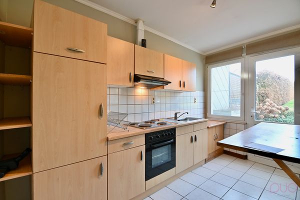 We betreden de woning via de ruime inkomhal met directe toegang naar de leefruimte van 33m2 en de aansluitende keuken. Vanuit de leefruimte kunnen we ook rechtstreeks toegang krijgen tot de zeer ruime garage. De keuken is uitgerust met een ingebouwde koelkast (IGNIS), een oven (IGNIS), een elektrisch kookvuur, een dampkap, een spoelbak met druiprekje. Het werkblad is gelamineerd en voorzien van spatwand.