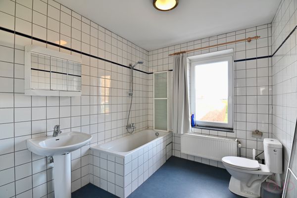 Op de eerste verdieping vinden we een nachthal, drie ruime slaapkamers en een ingerichte badkamer met een toilet, douche-in-bad, lavabomeubel met spiegelkast en een tegelwand.