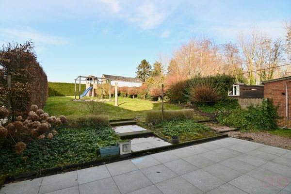 De tuin is volledig aangelegd en voorzien van een groot terras.. Tevens vinden we er nog een gewelvenkelder van 27m2.