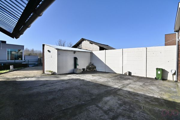 Achter het poortgebouw bevindt zich een ruime binnenkoer met aansluitend een loods, een buitenberging en verschillende stallingen. Dit maakt het geheel uitermate geschikt voor zelfstandigen, hobbyisten, opslag, dierenliefhebbers of wie op zoek is naar extra bergruimte.