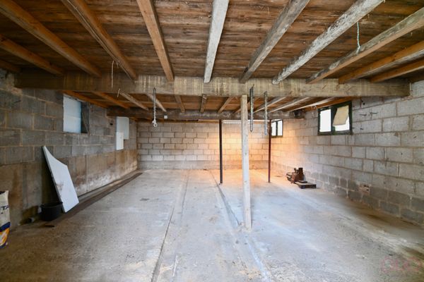 Keramische tegelvloer, gewelven plafond, bovengrondse mazouttank, CV-ketel (Hansa), Boiler 100l (Atlantic)
