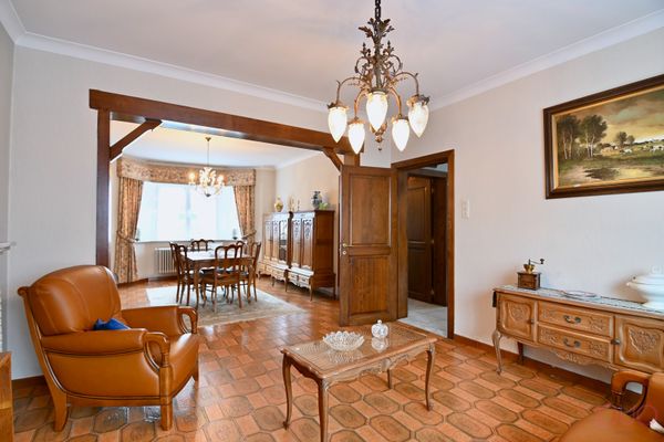 Deze eigendom combineert ruimte, charme en tal van mogelijkheden. De statige gevel en het poortgebouw geven het pand een unieke uitstraling. Binnen biedt de woning royale leefruimtes met veel lichtinval en een solide basis die u volledig naar eigen smaak kan moderniseren of inrichten. De woning werd op het gelijkvloers ingedeeld met een inkomhal, een ruime living met salon en eetkamer en een aparte zithoek die de verbinding maakt naar de keuken. Verder vinden we hier een ingerichte badkamer met aansluitend de wasplaats. De kelder doet dienst als CV- en bergruimte.