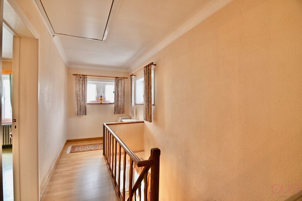 Op de verdieping vinden we een nachthal en drie ruime slaapkamers. De zolderverdieping, momenteel bereikbaar via een uitschuifbare trap, leent zich dankzij zijn hoogte ertoe om extra kamers te creëren.