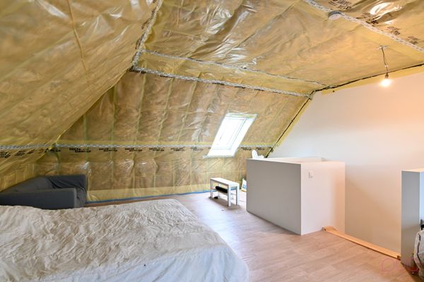 Vinyl vloer, af te werken dak (gyproc afwerken), ventilatie, mogelijkheid tot zolderberging en 2 slaapkamers