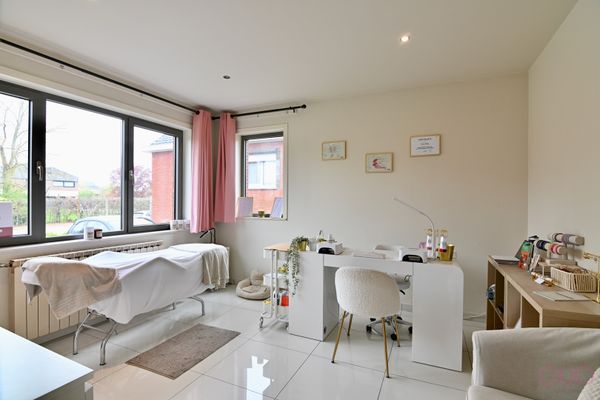 Momenteel is de woning ingericht als een gelijkvloerse woonst. Aan de voorzijde bevinden zich twee verzorgde slaapkamers en de badkamer. Eén van de kamers wordt momenteel gebruikt als praktijkruimte, wat extra flexibiliteit biedt.