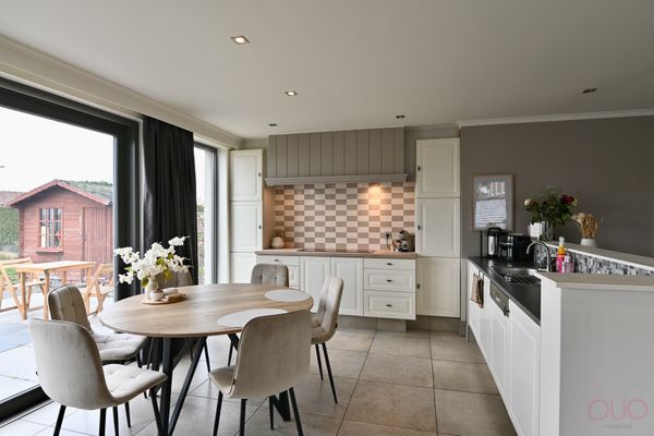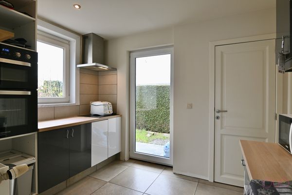 De achterbouw herbergt de lichtrijke leefruimte met open keuken, die uitkijkt op de achterliggende tuin. Aansluitend aan de keuken vindt u een praktische bijkeuken en een technische berging. Deze ruimtes bieden bijkomende mogelijkheden en kunnen mits creativiteit worden omgevormd tot bijvoorbeeld een extra badkamer, speelkamer of bureau.