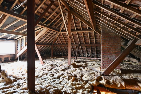 tegel, zolderluik met trap, stockageruimte