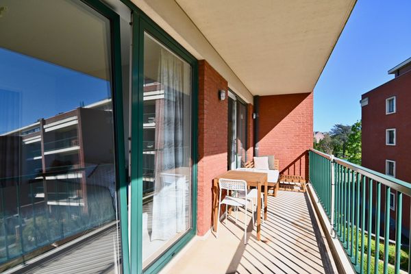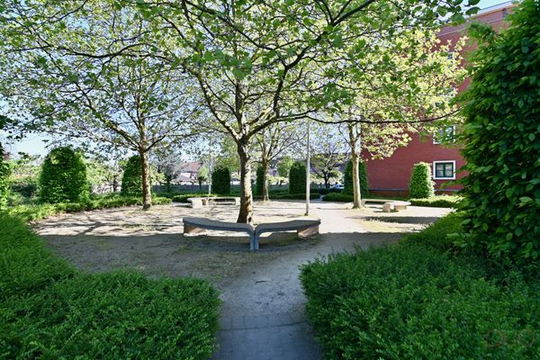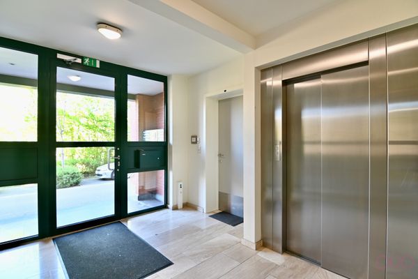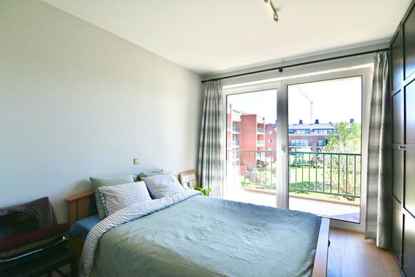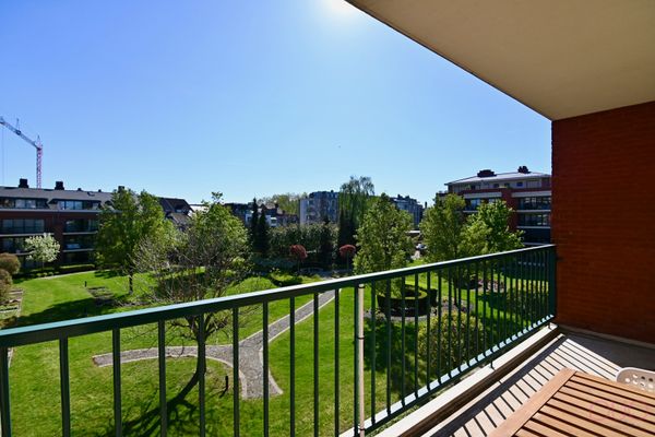 Een absolute troef is het ruime, zuidgerichte inpandige terras dat zich uitstrekt over de volledige breedte van het appartement. Dankzij de grote raampartijen en de centrale ligging binnen de residentie geniet je hier van een mooi open zicht op de gemeenschappelijke tuin.